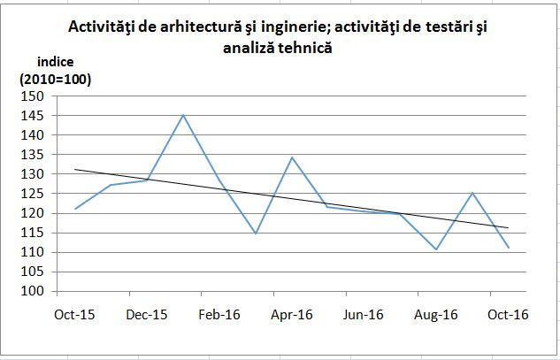 Activitățile de arhitectură și inginerie au avut un trend descendent în ultimele 12 luni, potrivit datelor comunicate de Institutul Național de Statistică.
