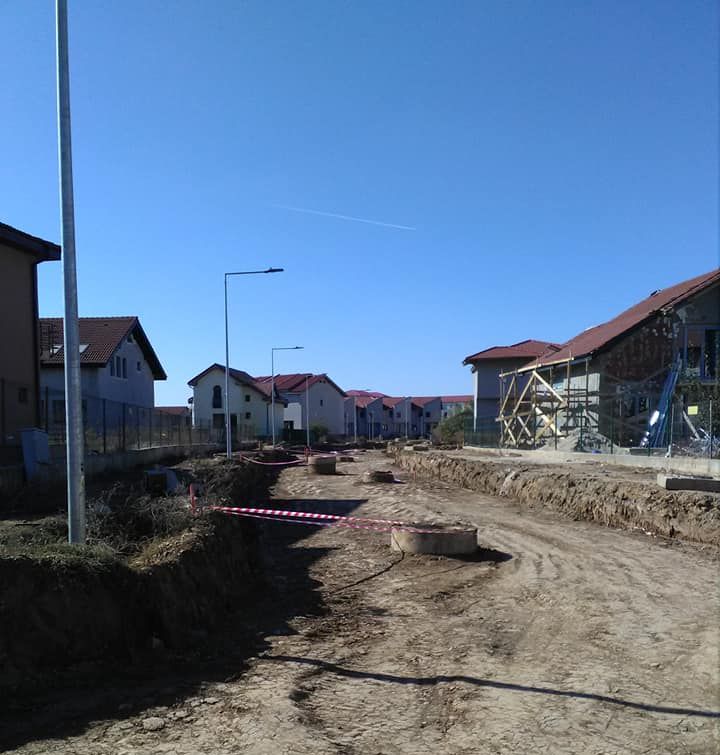 * execuția diseminată a lucrărilor de drumuri/canalizare/apă/electricitate, acestea fiind nefinalizate (rețeaua de gaze nu se poate executa decât după executarea celei de canalizare, iar aceasta din urma nu este executată/finalizată nici la acest moment).