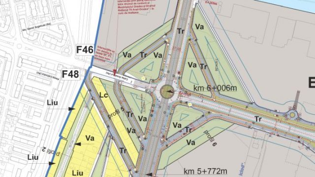 Patru drumuri adiacente la giraţia de sub pasajul DN 79 vor permite virajul la dreapta