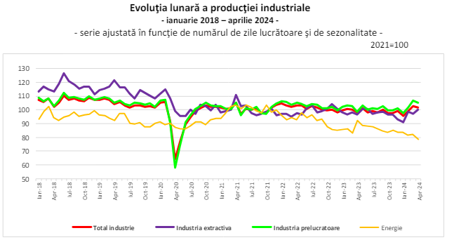 Producția industrială a scăzut în luna aprilie față de luna precedentă, potrivit datelor transmise de Institutul Național de Statistică. Scăderea față de luna martie a fost 1,3% ca serie ajustată în funcţie de numărul de zile lucrătoare şi de sezonalitate. …