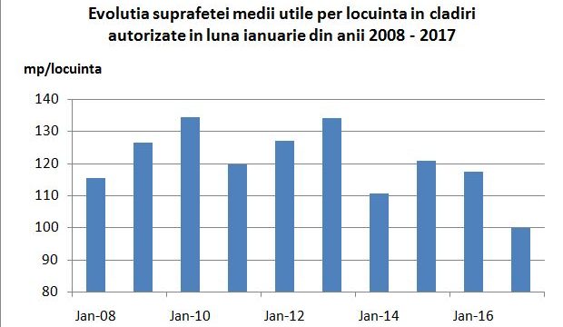 Un record în ceea ce privește locuințele în clădirile autorizate a fost stabilit în prima lună a acestui an. S-a consemnat cea mai mică suprafață utilă per locuință în clădirile autorizate în lunile ianuarie ale ultimilor 10 ani. Anul 2017 …