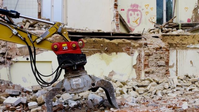 Lucrari de demolare in incinta unui mare parc comercial