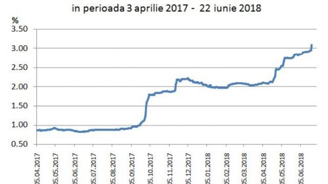 ROBOR la 3 luni depaseste pragul de 3%