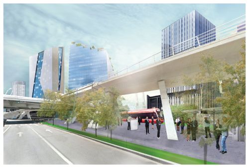 * O eurogară cu două terminale: Gara principală (Terminalul A) se propune a fi mutată la o distanță de circa 1.3 km, la nord de Podul Grant. Ea ar fi legată de mijloacele de transport în comun de pe Calea Griviței și s-ar construi simultan cu un mall adiacent. Întregul ansamblu ar fi legat de Gara de Nord actuală (Terminalul B) printr-o spină urbană densă, cu clădiri de birouri, centru de afaceri, clădiri administrative și săli de conferințe, un eco-cartier și dotări comerciale, culturale și de agrement. Soluția propune o legatură rapidă de tip monorail (ca la aeroporturi) între cele doua terminale.