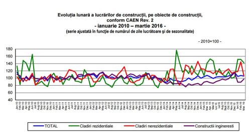 Totusi, per ansamblul primelor trei luni ale acestui an, volumul lucrărilor de construcții a crescut, față de trimestrul I 2015, cu +2% ca serie ajustată în funcție de numărul de zile lucrătoare şi de sezonalitate, potrivit INS .