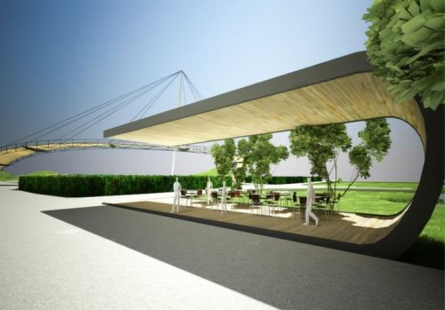 Pasarela belvedere a fost finalizata in procent de 90%. In perioada urmatoare va fi montata balustrada de sticla. Pasarela preia vizitatorul de pe aleea principala si urca cu o panta de maxim 8% pana la o inaltime de 6 m deasupra solului, oferind o imagine panoramica asupra parcului. Continuand pe traseul pasarelei, pietonul revine la nivelul solului si este din nou preluat de aleea principala.